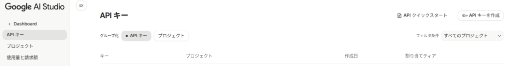 1. Google AI Studioにアクセスし、キーを発行する